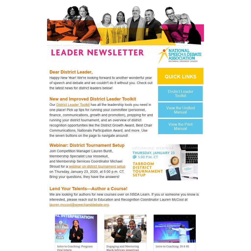 Happy New Year! We're looking forward to another wonderful year of speech and debate and we couldn't do it without you. Check out the latest news for district leaders below!