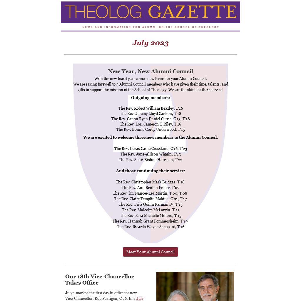We are saying farewell to 5 Alumni Council members who have given their time, talents, and gifts to support the mission of the School of Theology. We are thankful for their service!