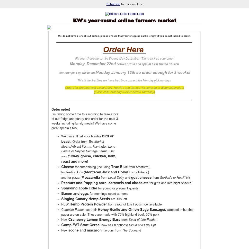 For the December 22nd pickup all orders will receive a gift certificate for a new membership ($20 value) for you to give to someone else!