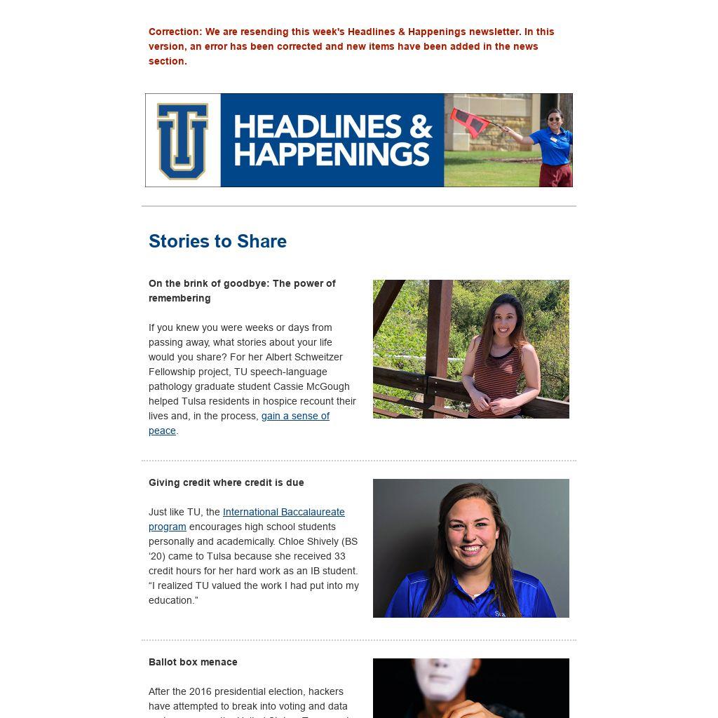 Correction: We are resending this week's Headlines & Happenings newsletter. In this version, an error has been corrected and new items have been added in the news section.