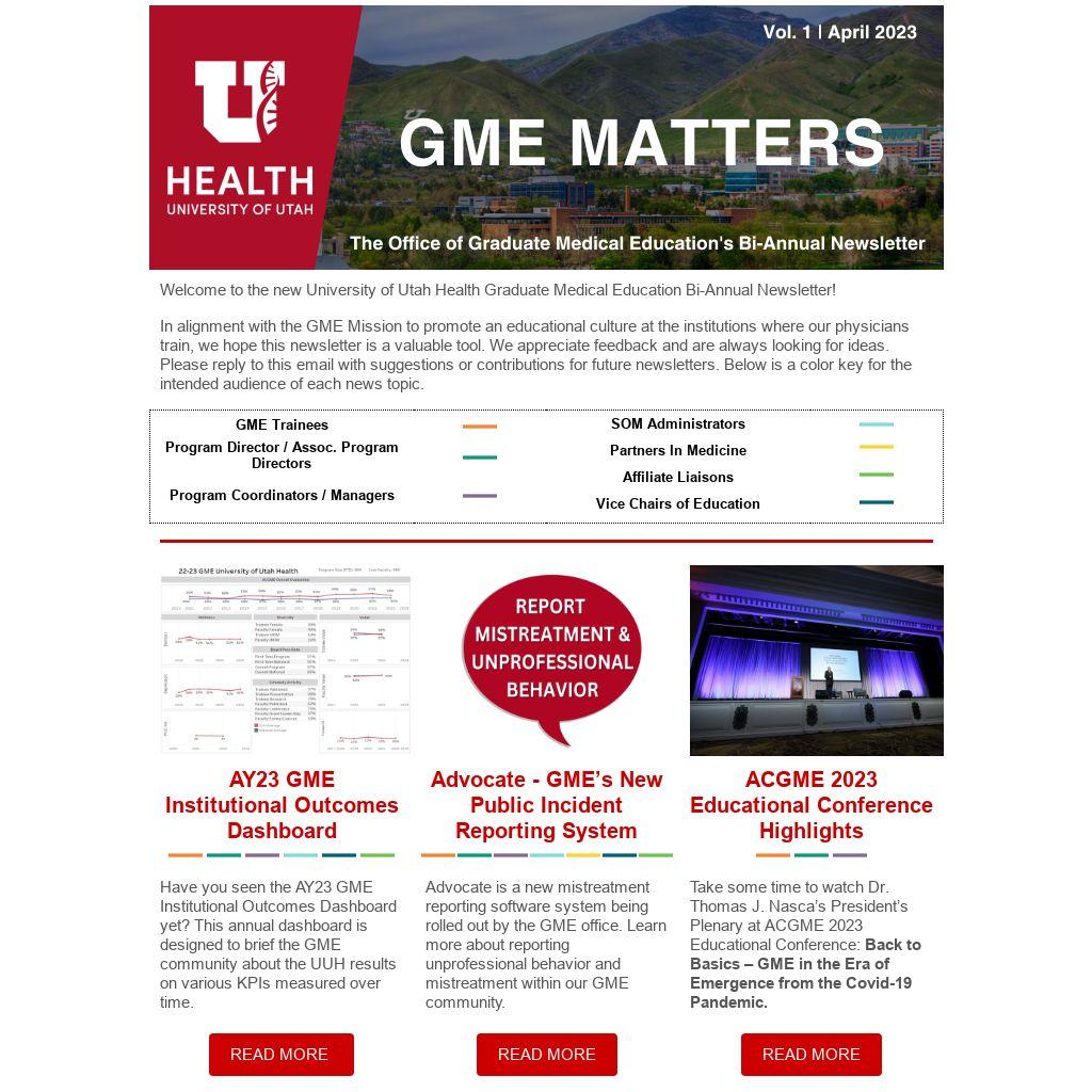 Welcome to the new University of Utah Health Graduate Medical Education Bi-Annual Newsletter!