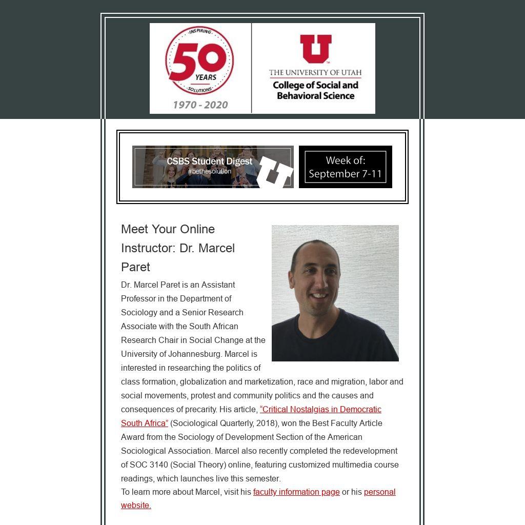 This semester at the U is different from any other, and everyone has questions! Whether it's about this semester's classes specifically, campus life, or the college in general, Dean Berg has answers! Open Chat with Dean Berg is a virtual open conversation where students can ask questions about a range of topics.