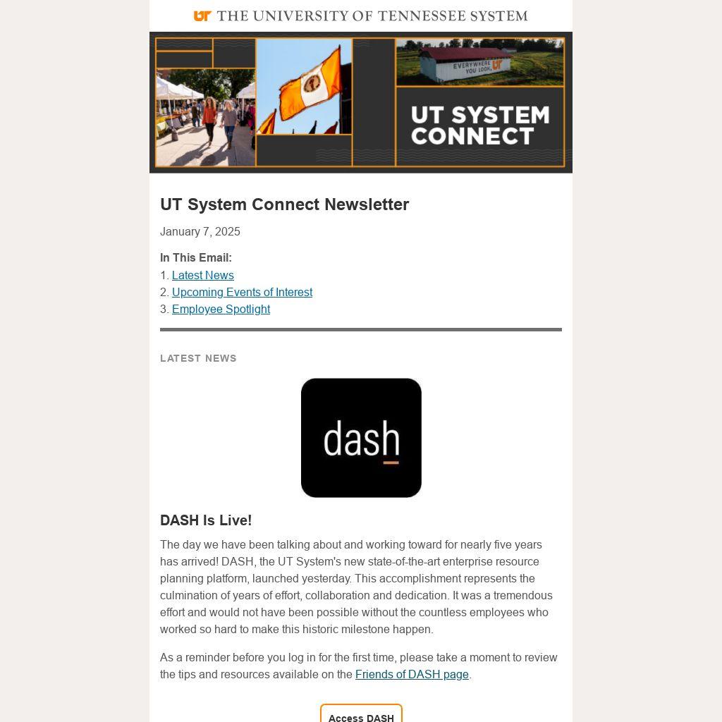 The day we have been talking about and working toward for nearly five years has arrived! DASH, the UT System's new state-of-the-art enterprise resource planning platform, launched yesterday. This accomplishment represents the culmination of years of effort, collaboration and dedication. It was a tremendous effort and would not have been possible without the countless employees who worked so hard to make this historic milestone happen.