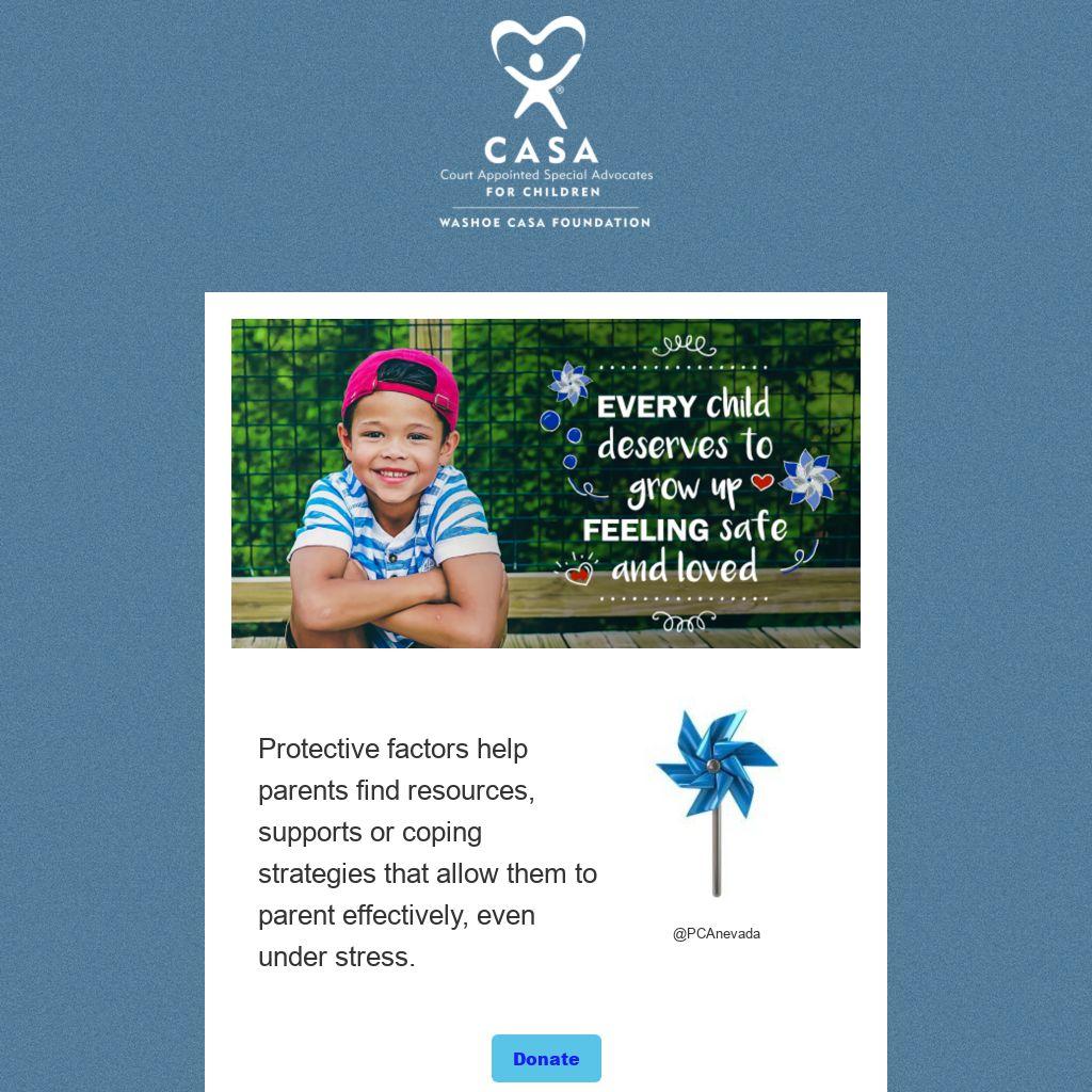 By donating to the Washoe CASA Foundation, you support children in foster care. CASAs serve the best interests of the children they advocate for.