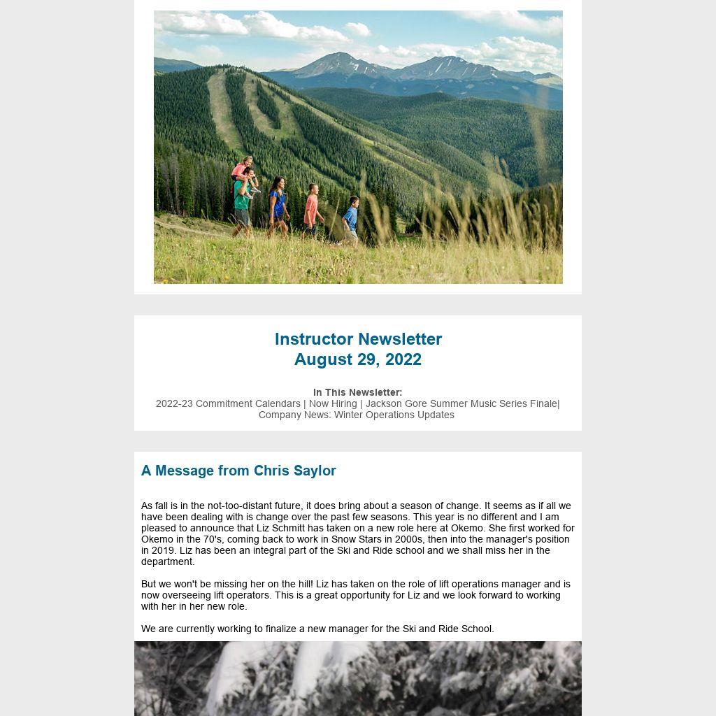 As fall is in the not-too-distant future, it does bring about a season of change. It seems as if all we have been dealing with is change over the past few seasons. This year is no different and I am pleased to announce that Liz Schmitt has taken on a new role here at Okemo. She first worked for Okemo in the 70's, coming back to work in Snow Stars in 2000s, then into the manager's position in 2019. Liz has been an integral part of the Ski and Ride school and we shall miss her in the department.
