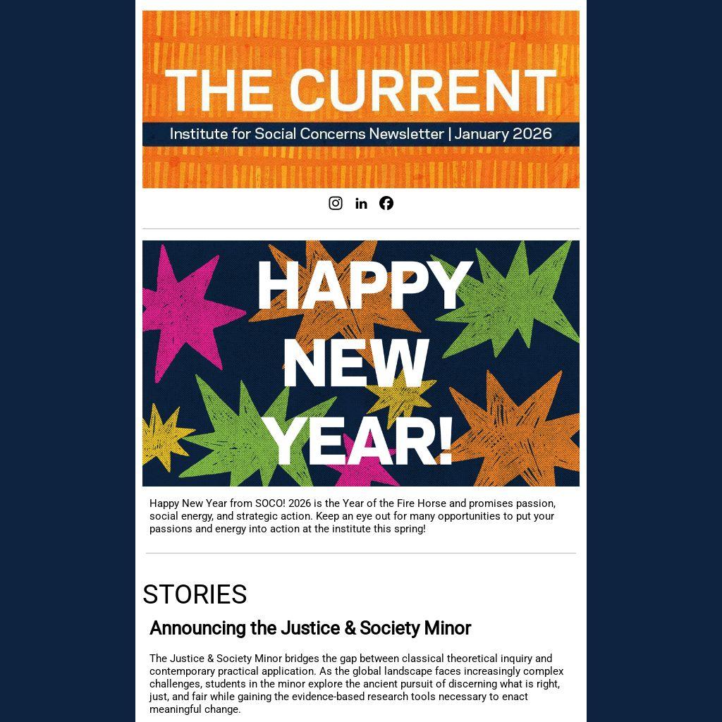 Happy New Year from SOCO! 2026 is the Year of the Fire Horse and promises passion, social energy, and strategic action. Keep an eye out for many opportunities to put your passions and energy into action at the institute this spring!