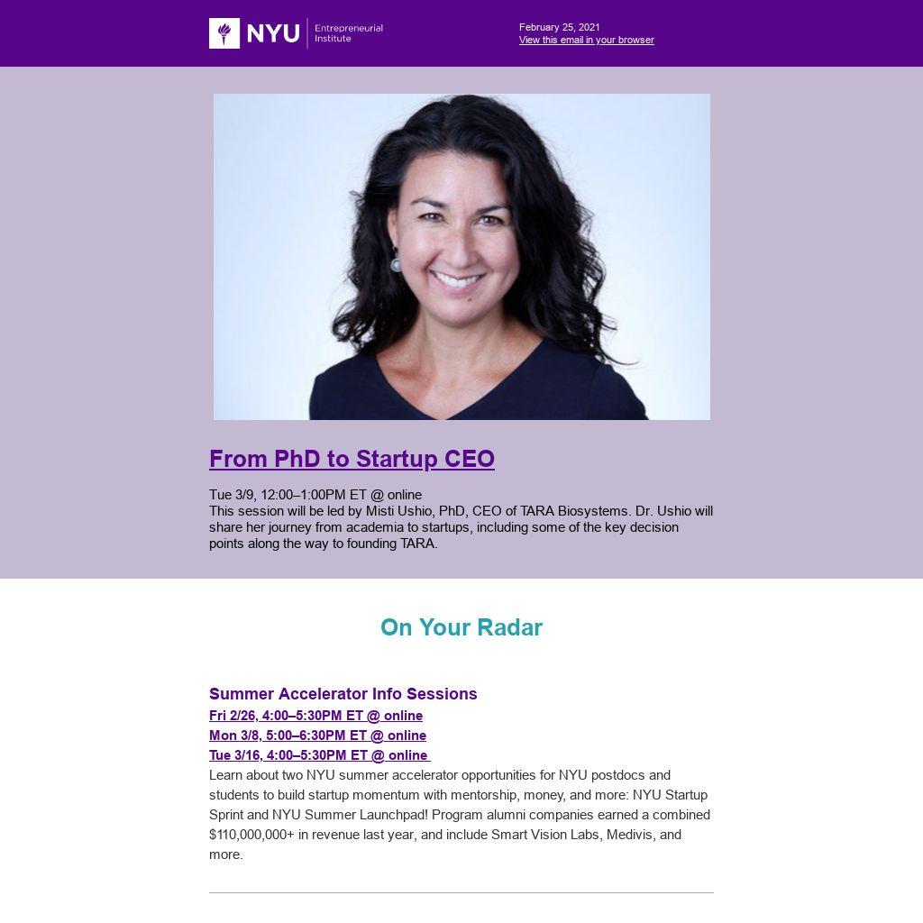 Learn about two NYU summer accelerator opportunities for NYU postdocs and students to build startup momentum with mentorship, money, and more: NYU Startup Sprint and NYU Summer Launchpad! Program alumni companies earned a combined $110,000,000+ in revenue last year, and include Smart Vision Labs, Medivis, and more.