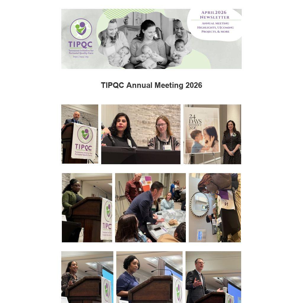 Reconnecting, reinvigorating, and reimaging the future for Tennessee's Moms and Babies was the highlight of the 18th TIPQC Annual Meeting held Tuesday through Thursday, March 24-26, 2026, in Franklin. With over 570 healthcare professionals, as well as patients & families, Community Resources, and many other stakeholders in attendance. Attendees enjoyed the Commissioner of Health, Dr. John Dunn and Deputy Commissioner Dr. Tobi Amosun, State Representative Caleb Hemmer, nationally recognized Quality Improvement (QI) leader Dr. Veronica Gillispie-Bell, national Maternal Mental Health leader Birdie Gunyon-Meyer, and the viewing of the 24 Days Without You Film spotlighting Annie Sterle and her journey through an Amniotic Fluid Embolism (AFE). Drs. Jona Bandyopadhyay and Assistant Commissioner Elizabeth Harvey also shared updates from TennCare and the Department of Health, including information on the new Rural Health Transformation Program. The meeting highlighted a multitude of maternal and infant concerns with over 129 presenters and speakers, current Quality Improvement (QI) projects, Simulation Rooms including the Stryker Truck, local hospital quality improvement teams, a dedicated SUD/OEN learning track, and poster presentations—all inspiring and re-energizing the QI work locally and across the state. With great excitement and anticipation, The Naloxone Project kicked off their work in Tennessee. The energy and excitement for the ongoing work as well as new projects was palpable.