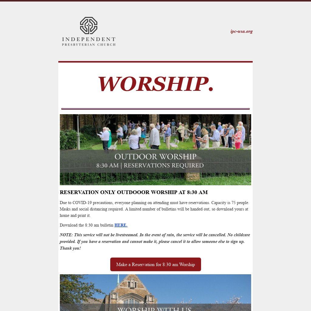 RESERVATION ONLY OUTDOOOR WORSHIP AT 8:30 AM
