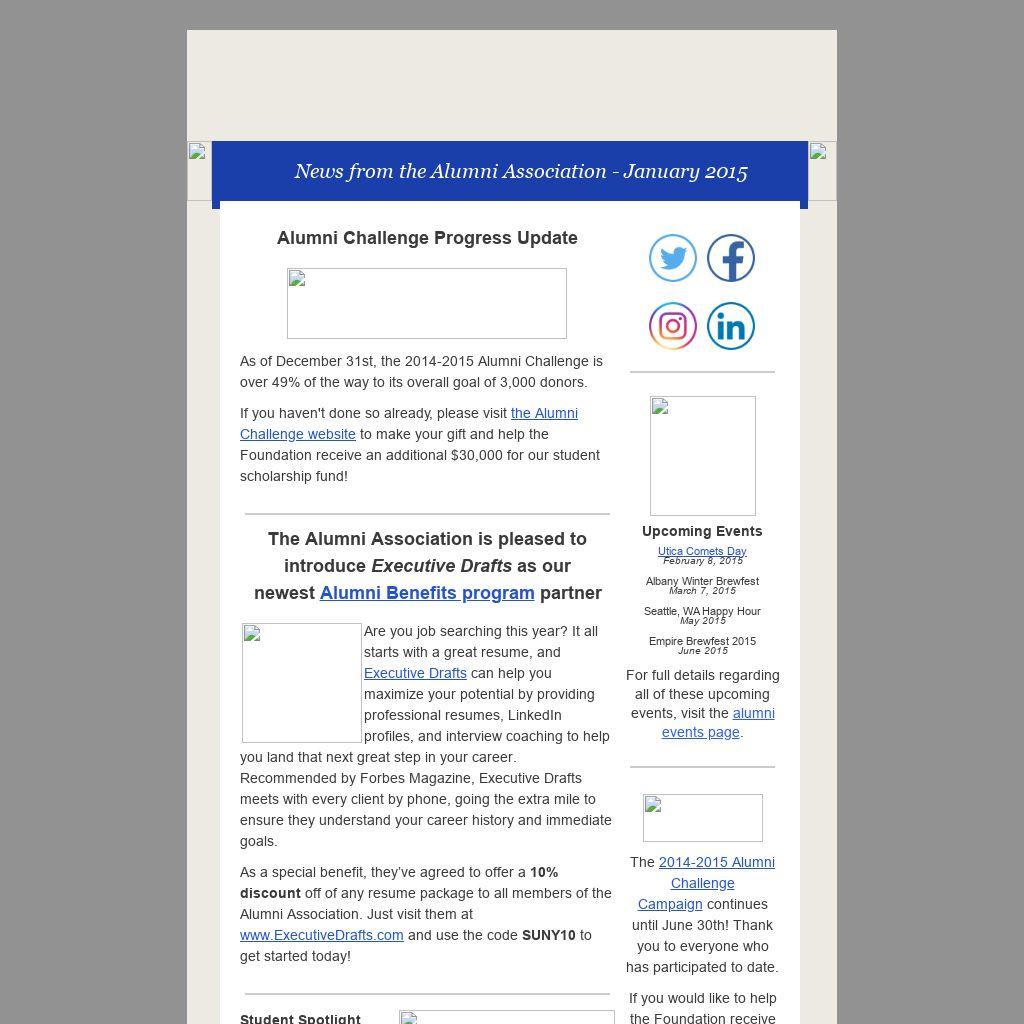 10% discount off of any resume package to all members of the Alumni Association. Just visit them at