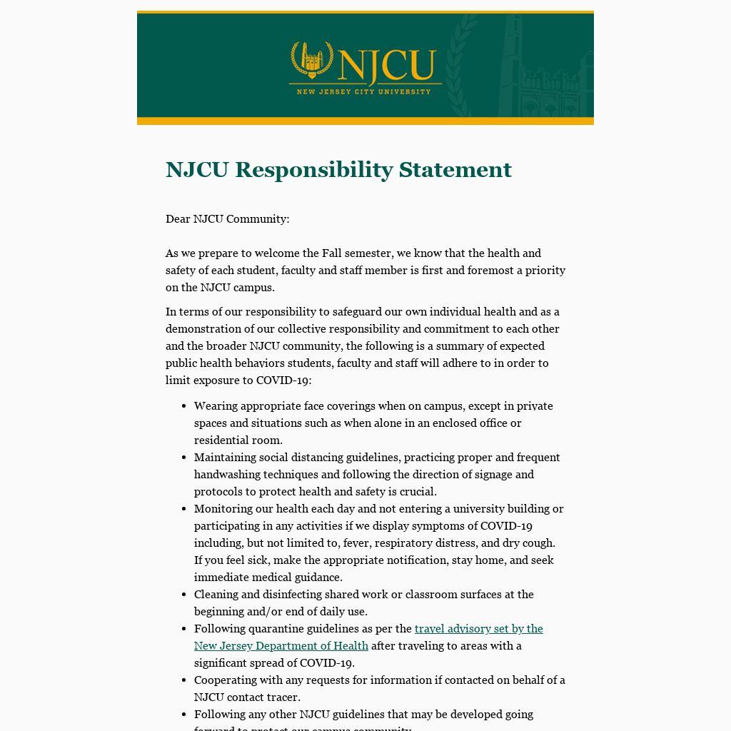 NJCU Responsibility Statement