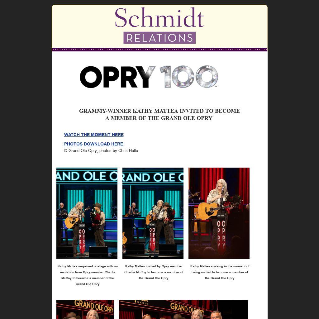 GRAMMY-WINNER KATHY MATTEA INVITED TO BECOME A MEMBER OF THE GRAND OLE OPRY