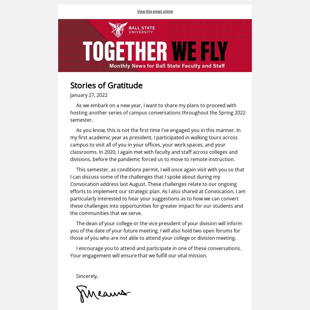 As we embark on a new year, I want to share my plans to proceed with hosting another series of campus conversations throughout the Spring 2022 semester.