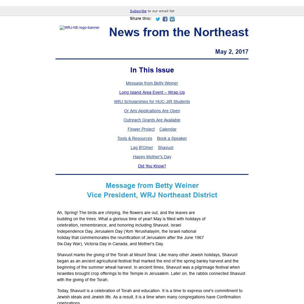 Chag sameach from the Board of the Northeast District of Women of Reform Judaism!