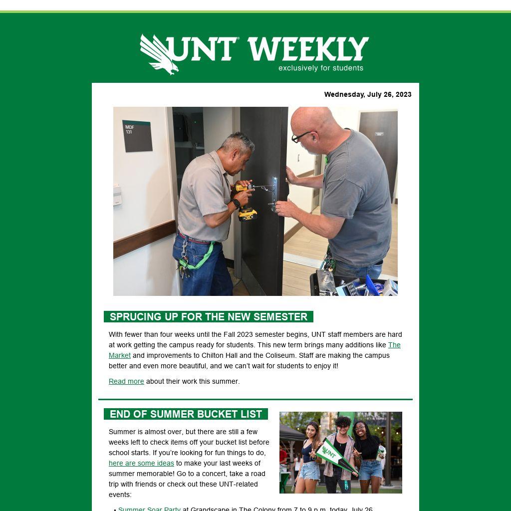As the fall semester approaches, be sure to visit myUNT and check your UNT email for important updates and action items. Keep reading UNT Weekly every Wednesday to stay informed about key dates, events, general information and reminders — all in one place!