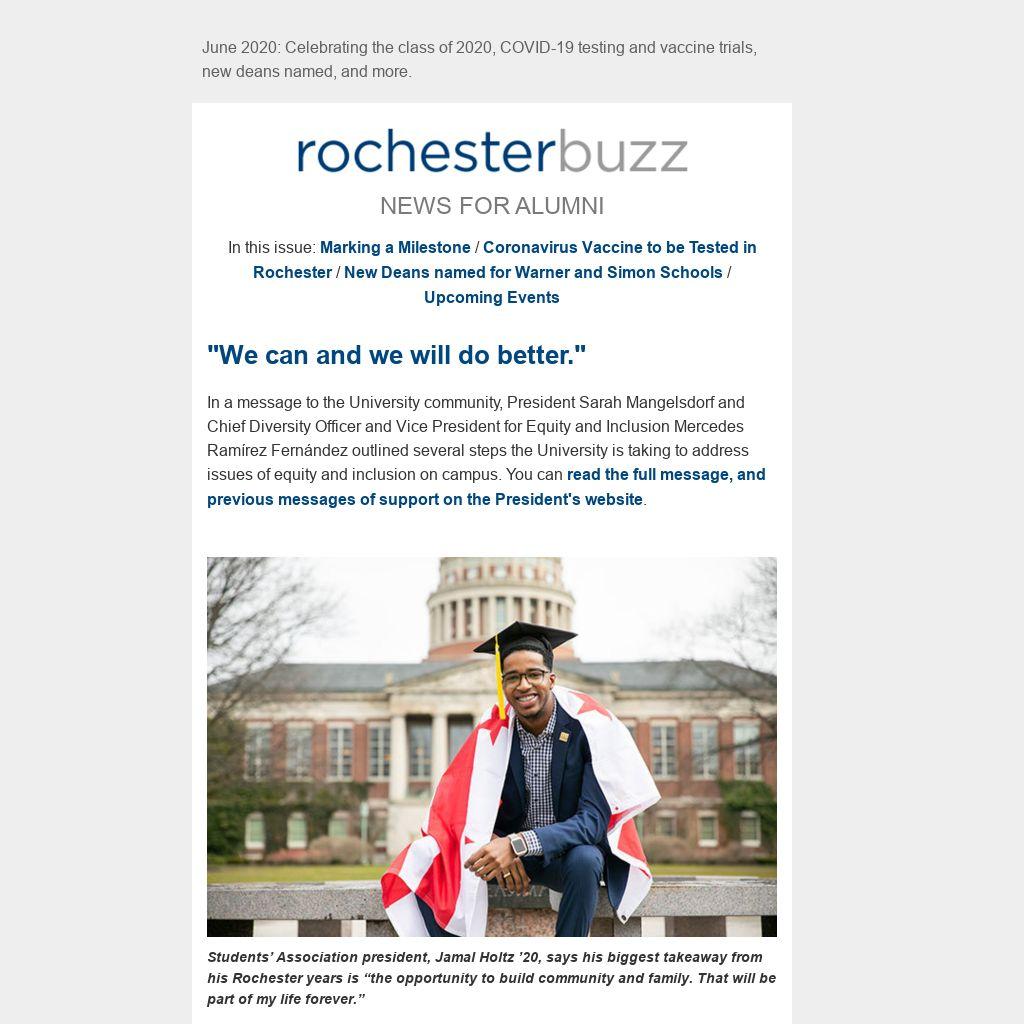 June 2020: Celebrating the class of 2020, COVID-19 testing and vaccine trials, new deans named, and more.