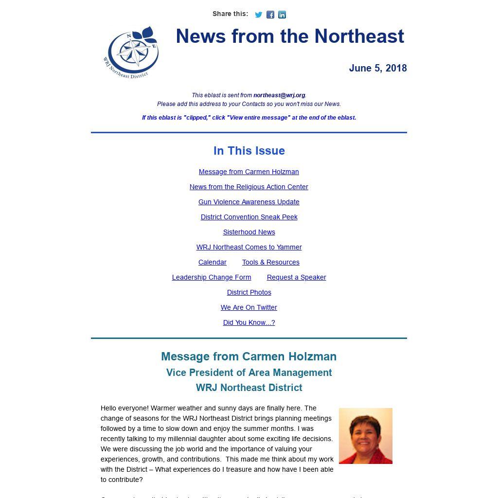 This eblast is sent from northeast@wrj.org.