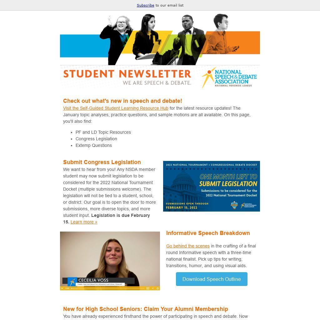 You have already experienced firsthand the power of participating in speech and debate. Now stay connected to your community by claiming your free alumni membership during our inaugural launch week January 24-28! Learn more »
