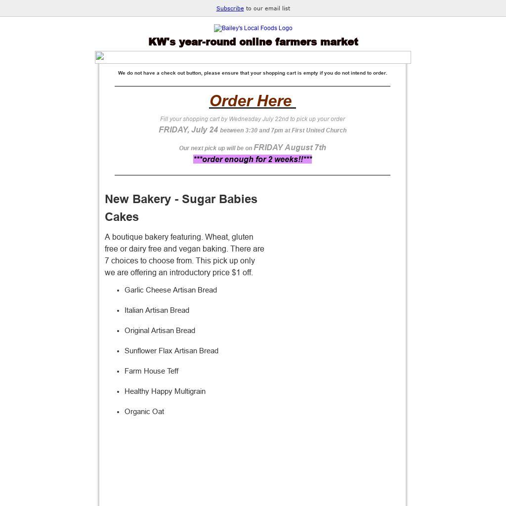 Fill your shopping cart by Wednesday July 22nd to pick up your order