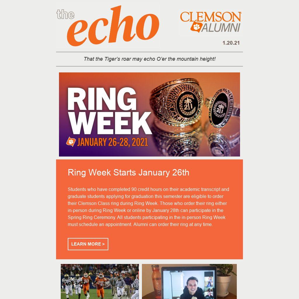 The Clemson Alumni Association will be sharing regular updates with the Clemson Family via email. Update your contact information to make sure you are receiving these updates.