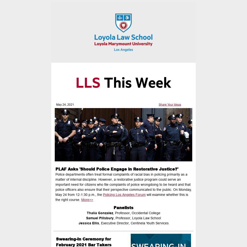 Police departments often treat formal complaints of racial bias in policing primarily as a matter of internal discipline. However, a restorative justice program could serve an important need for citizens who file complaints of police wrongdoing to be heard and that police officers also ensure that their perspective communicated to the public. On Monday, May 24 from 12-1:30 p.m., the Policing Los Angeles Forum will examine whether this is the right course. More>>