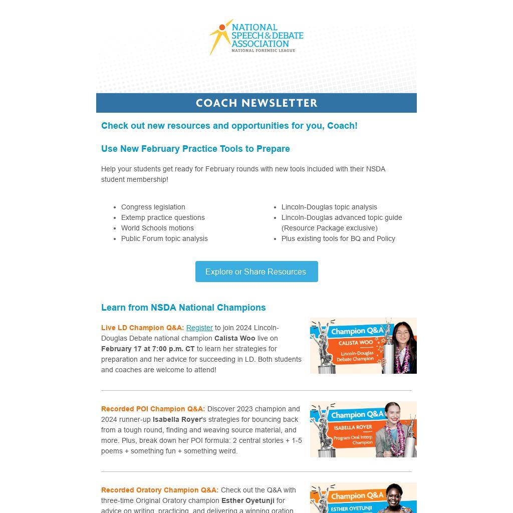 Live LD Champion Q&A: Register to join 2024 Lincoln-Douglas Debate national champion Calista Woo live on February 17 at 7:00 p.m. CT to learn her strategies for preparation and her advice for succeeding in LD. Both students and coaches are welcome to attend!