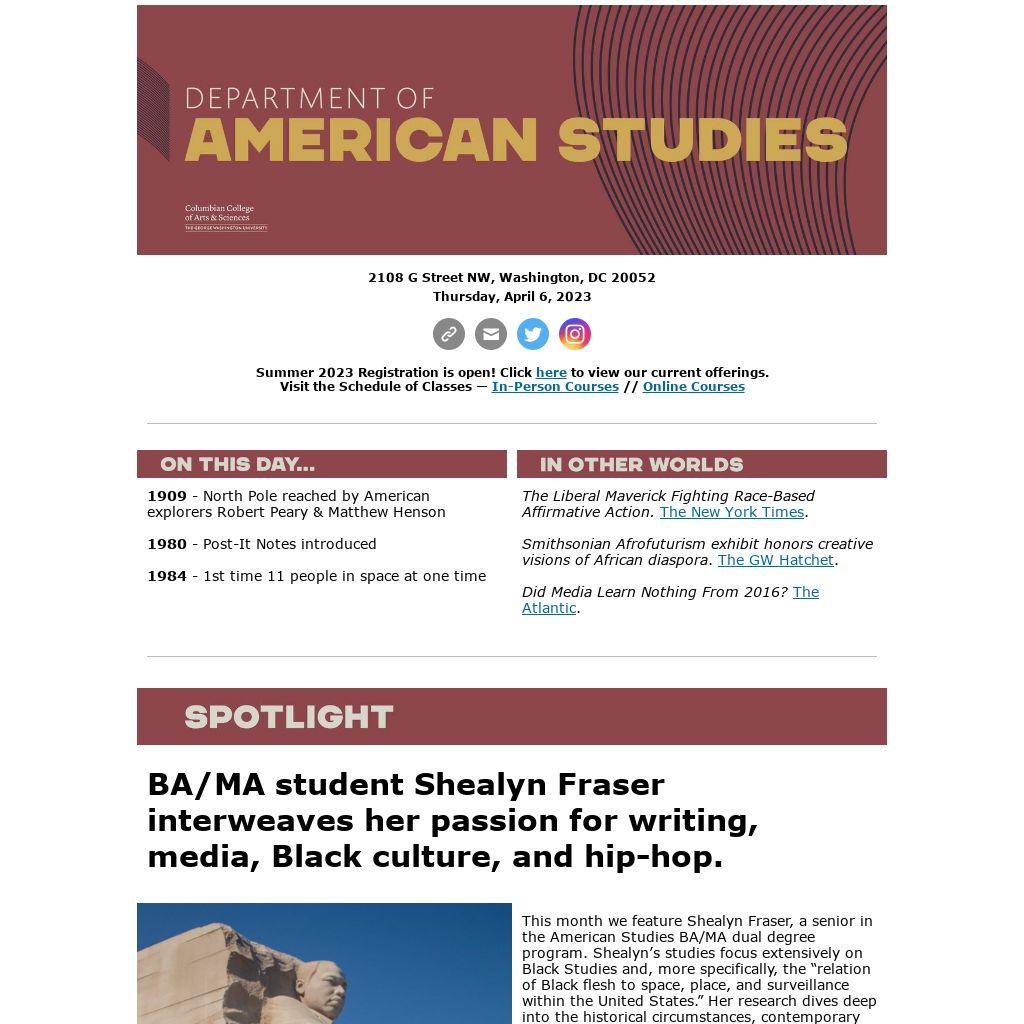Like what you see? Have spotlights, kudos, events, or opportunities that you would like to share? We want to hear from you! Navigate to our feedback form using the link below, or more simply, forward your tip to amst@gwu.edu.
