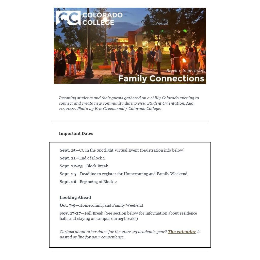Welcome all parents, families, and other student supporters to the 2022-23 Academic Year at Colorado College!