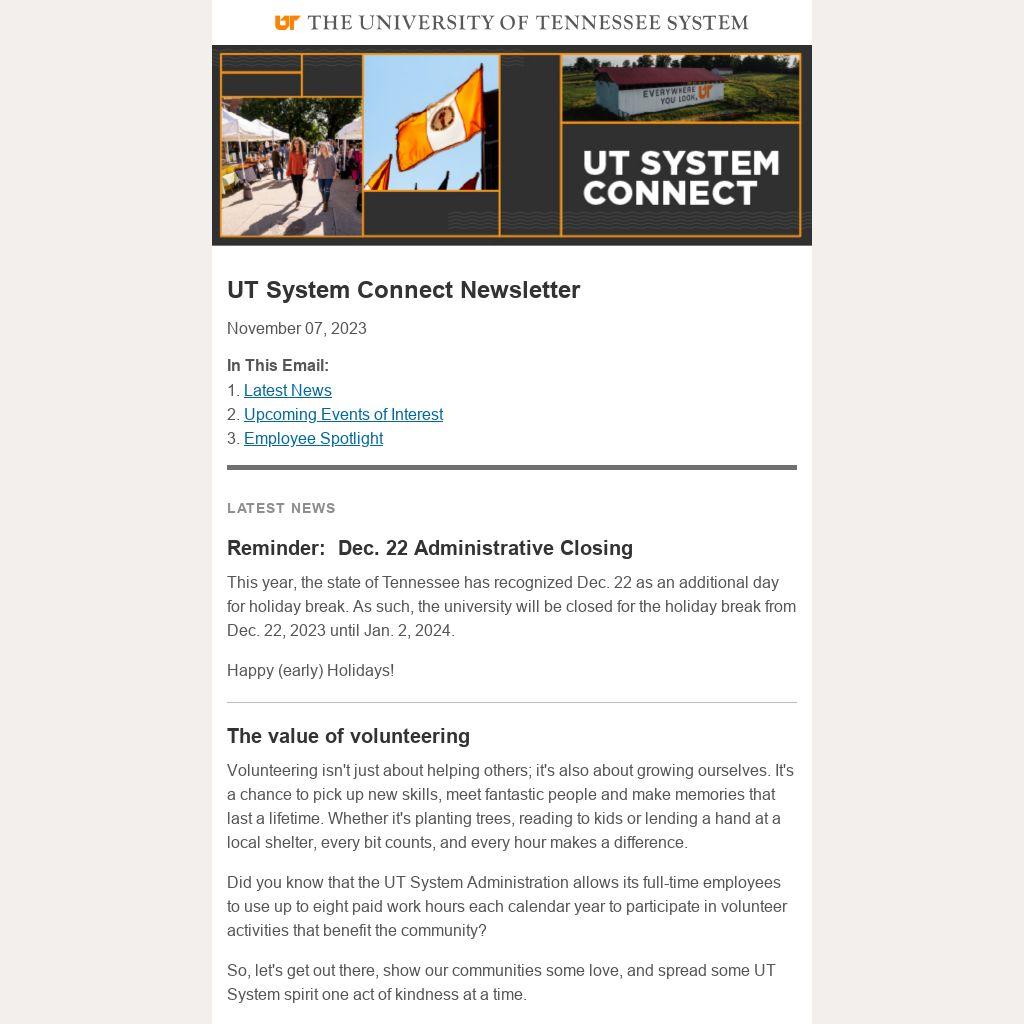 Save the date for the upcoming UT System Administration staff meerting on Tuesday, Dec. 12 from 10-11 a.m. More details coming soon!