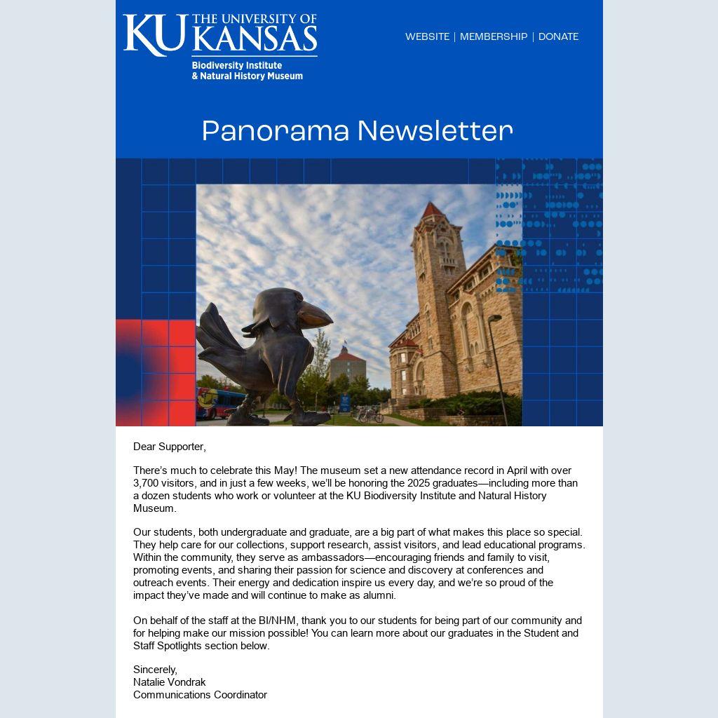 There’s much to celebrate this May! The museum set a new attendance record in April with over 3,700 visitors, and in just a few weeks, we’ll be honoring the 2025 graduates—including more than a dozen students who work or volunteer at the KU Biodiversity Institute and Natural History Museum.