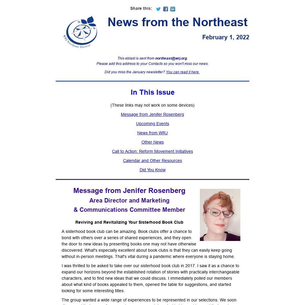 This eblast is sent from northeast@wrj.org.
