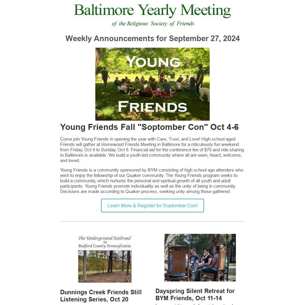 Young Friends Fall "Soptomber Con" Oct 4-6 |