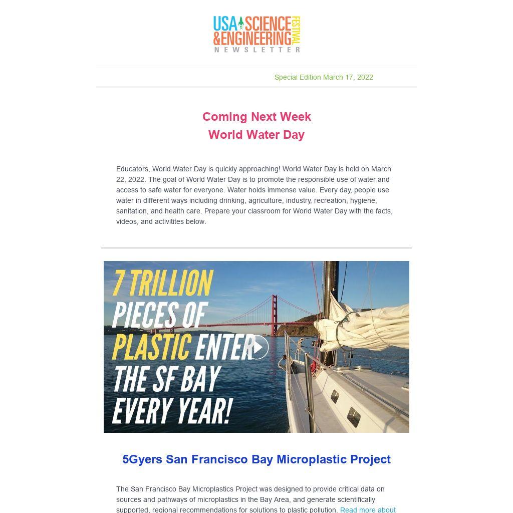 Educators, World Water Day is quickly approaching! World Water Day is held on March 22, 2022. The goal of World Water Day is to promote the responsible use of water and access to safe water for everyone. Water holds immense value. Every day, people use water in different ways including drinking, agriculture, industry, recreation, hygiene, sanitation, and health care. Prepare your classroom for World Water Day with the facts, videos, and activitites below.