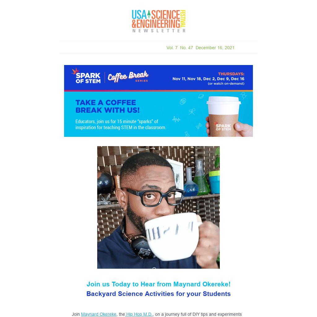 Join us Today to Hear from Maynard Okereke! Backyard Science Activities for your Students