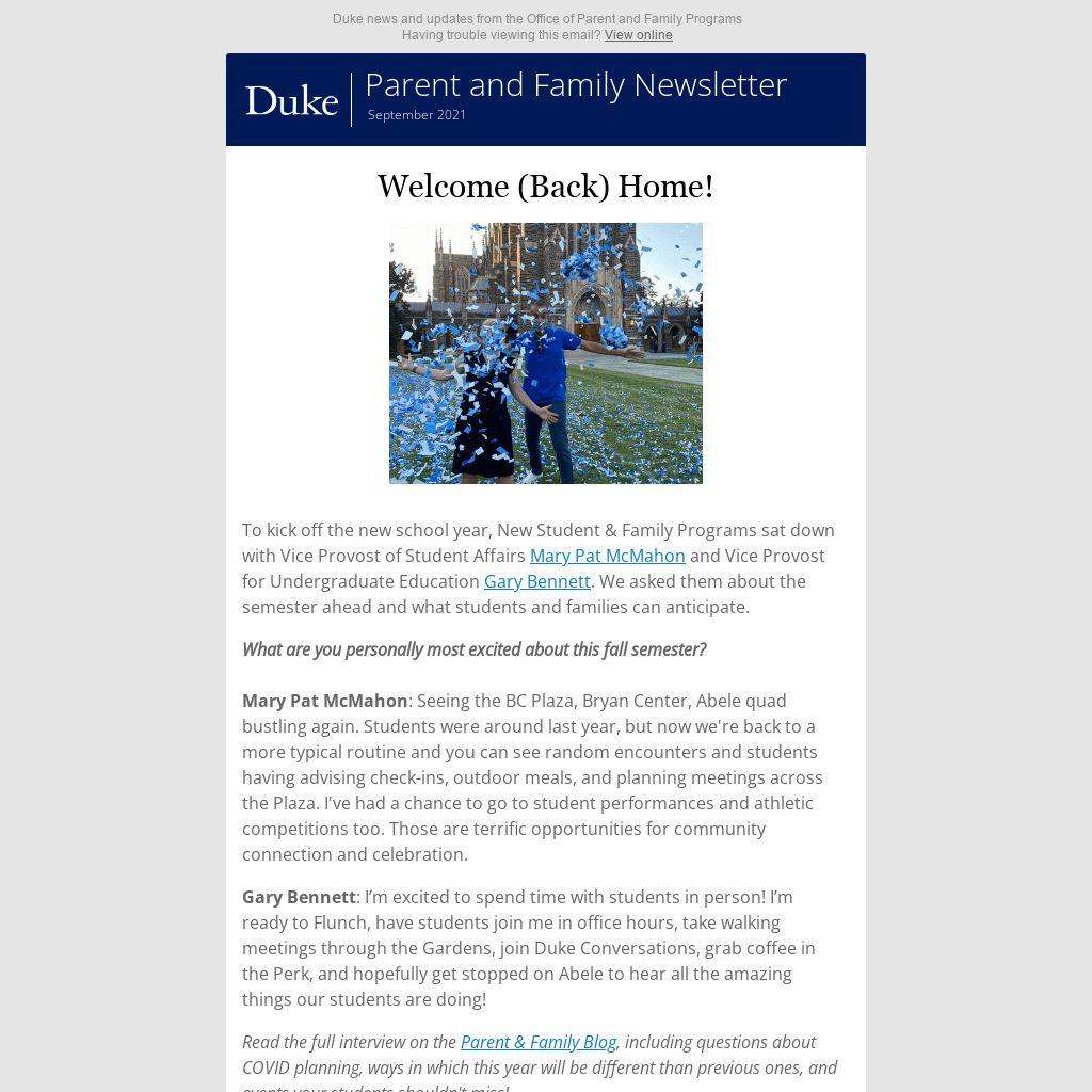 Over the last few weeks, Duke has sent multiple updates to students and families regarding COVID policies. You can review the messages sent to students here.