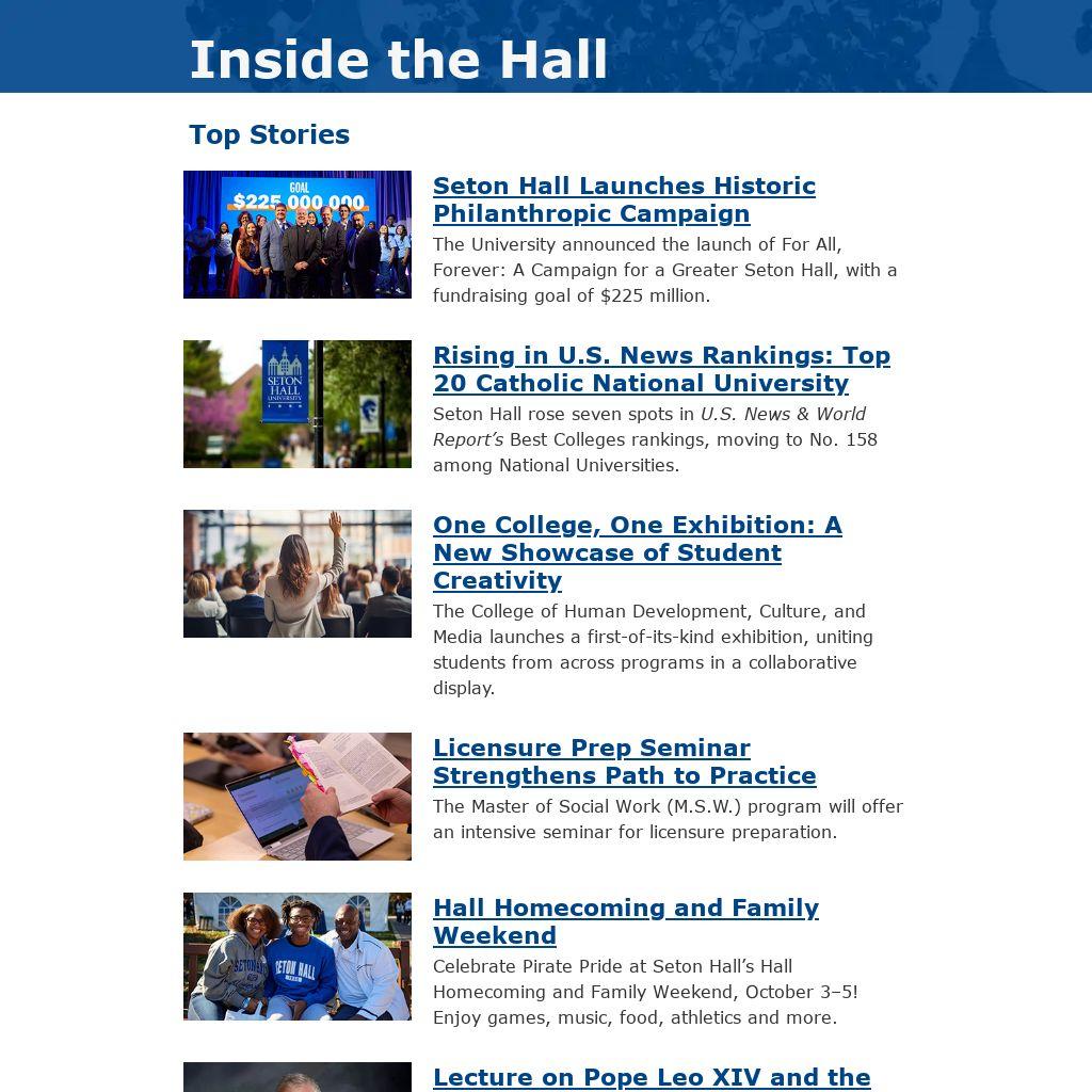 The University announced the launch of For All, Forever: A Campaign for a Greater Seton Hall, with a fundraising goal of $225 million.
