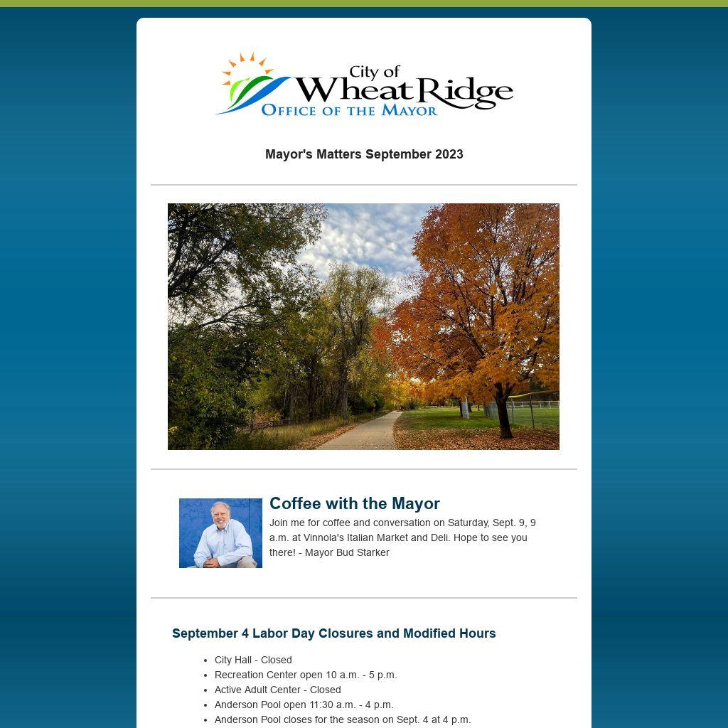 - Coffee with the Mayor Sept. 9, 9 a.m.