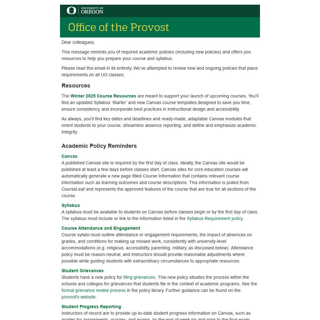 Please read this email in its entirety. We’ve attempted to review new and ongoing policies that place requirements on all UO classes.