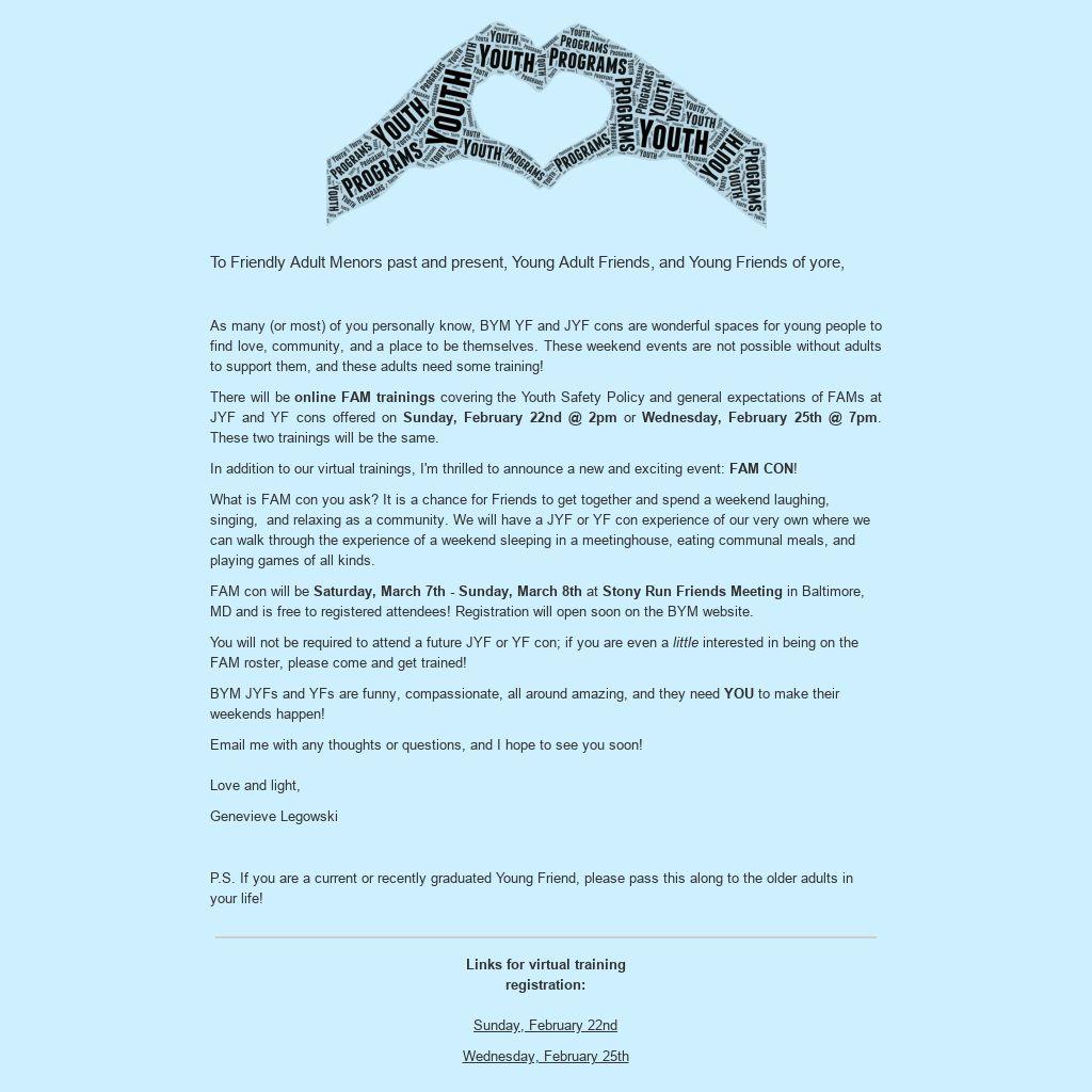 Trainings & weekend conference for potential future Friendly Adult Mentors!