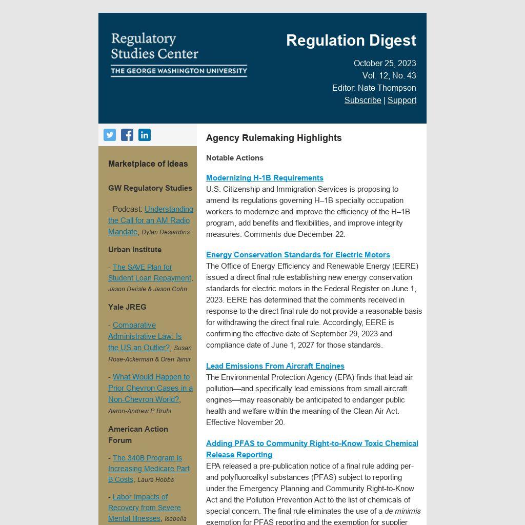 Notable ActionsModernizing H-1B Requirements U.S. Citizenship and Immigration Services is proposing to amend its regulations governing H–1B specialty occupation workers to modernize and improve the efficiency of the H–1B program, add benefits and flexibilities, and improve integrity measures. Comments due December 22.