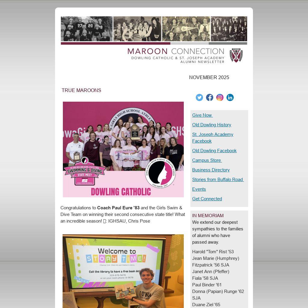Across events in Chicago, Omaha, the Twin Cities and Kansas City, over 200 alumni and friends came together to reconnect and celebrate the Dowling Catholic and St Joseph Academy community. Once a Maroon, Always a Maroon!