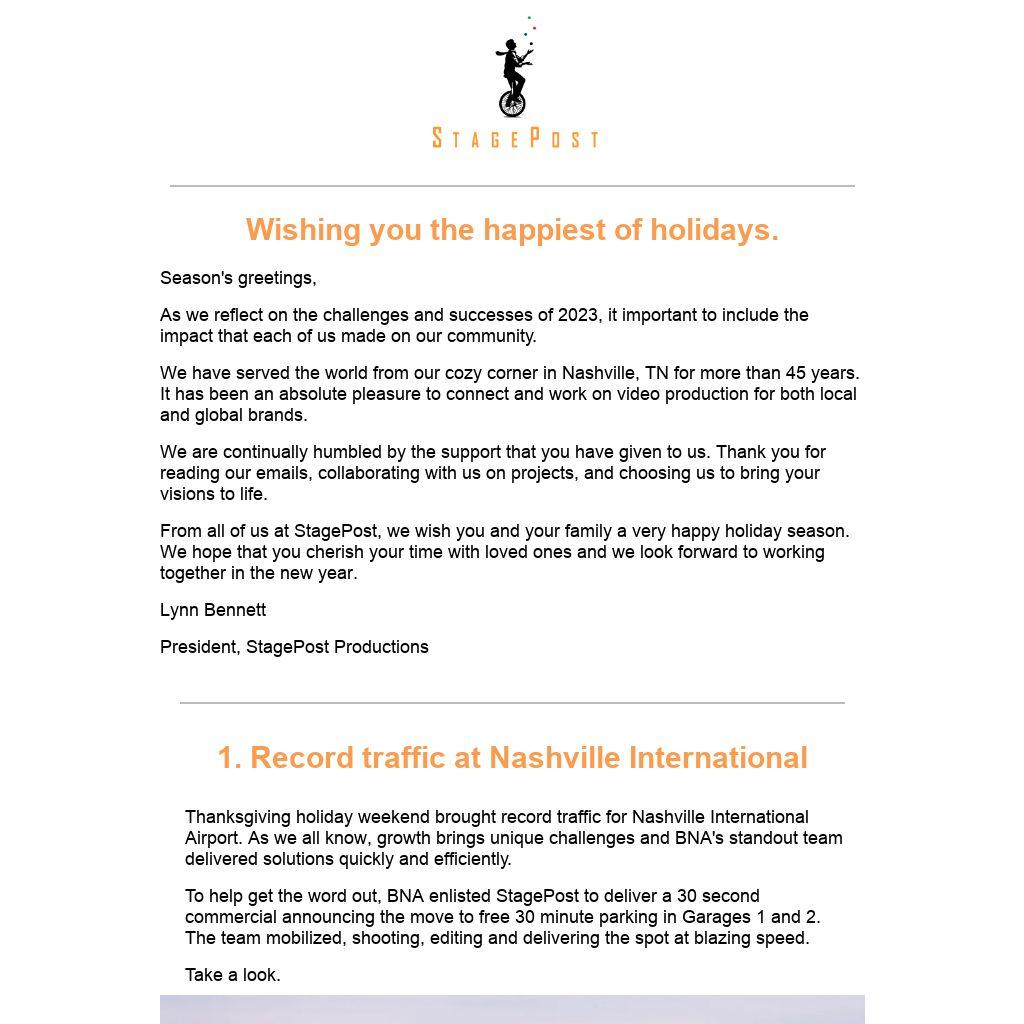 We have served the world from our cozy corner in Nashville, TN for more than 45 years. It has been an absolute pleasure to connect and work on video production for both local and global brands.