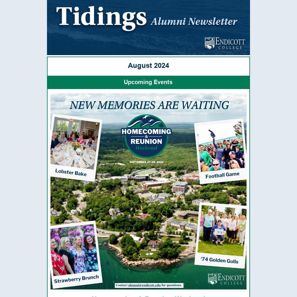 Whether you've made a career change, started a new hobby or venture, reconnected with your flock, went on an adventure with your family, or celebrated a meaningful milestone, we want to hear and share. Please send along your latest news and updates to be included in the fall print issue of Endicott College's Soundings Magazine! Submissions are due August 23.