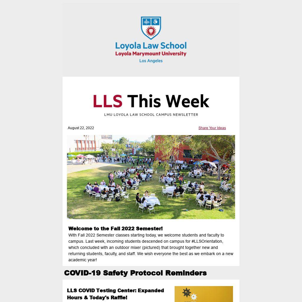 With Fall 2022 Semester classes starting today, we welcome students and faculty to campus. Last week, incoming students descended on campus for #LLSOrientation, which concluded with an outdoor mixer (pictured) that brought together new and returning students, faculty, and staff. We wish everyone the best as we embark on a new academic year!