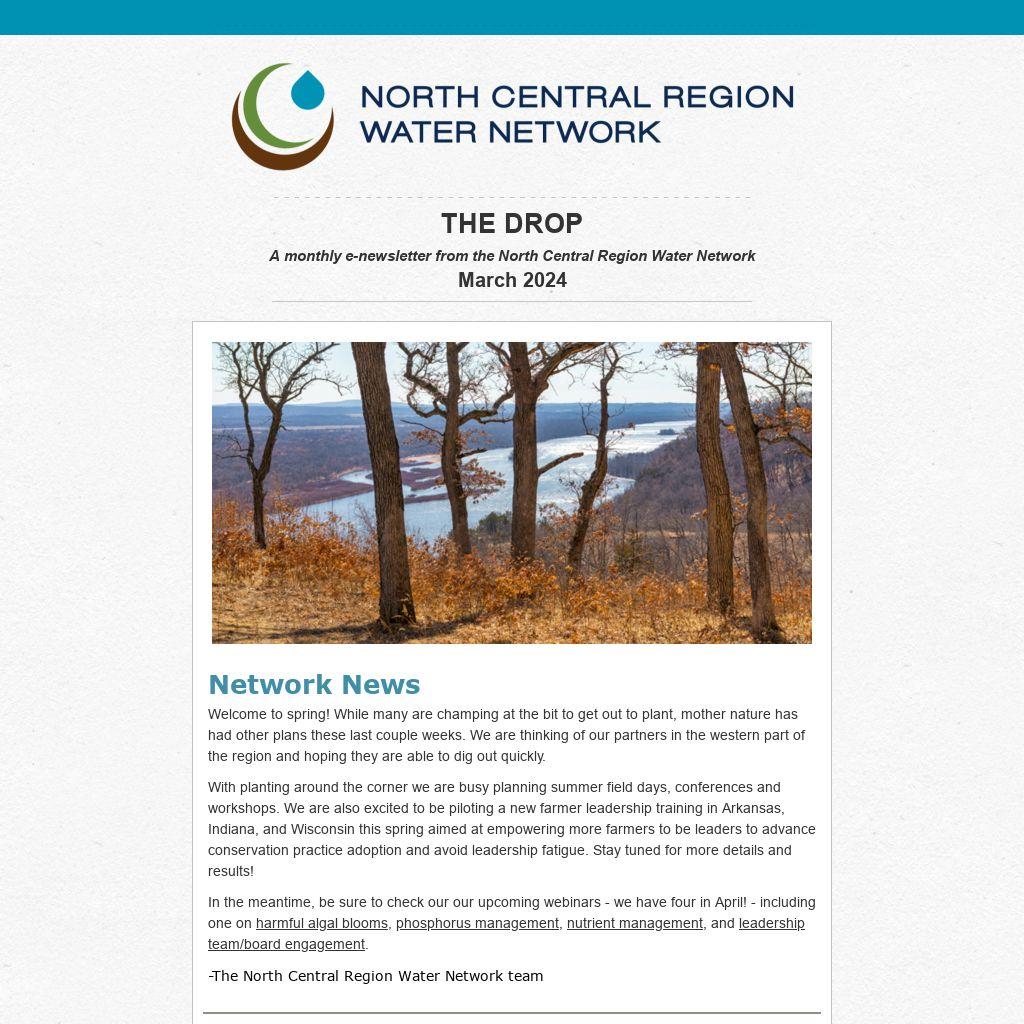 A monthly e-newsletter from the North Central Region Water Network March 2024