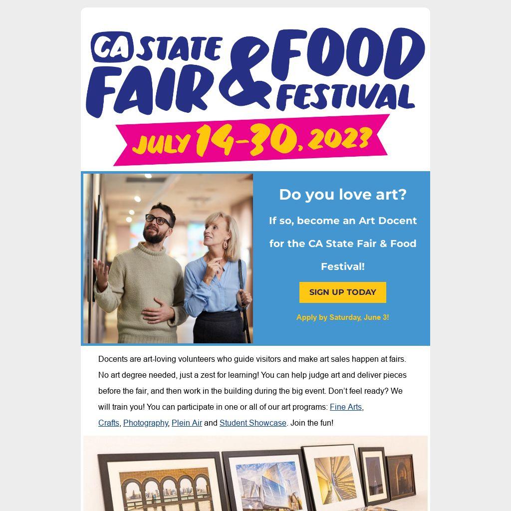 If so, become an Art Docent for the CA State Fair & Food Festival!
