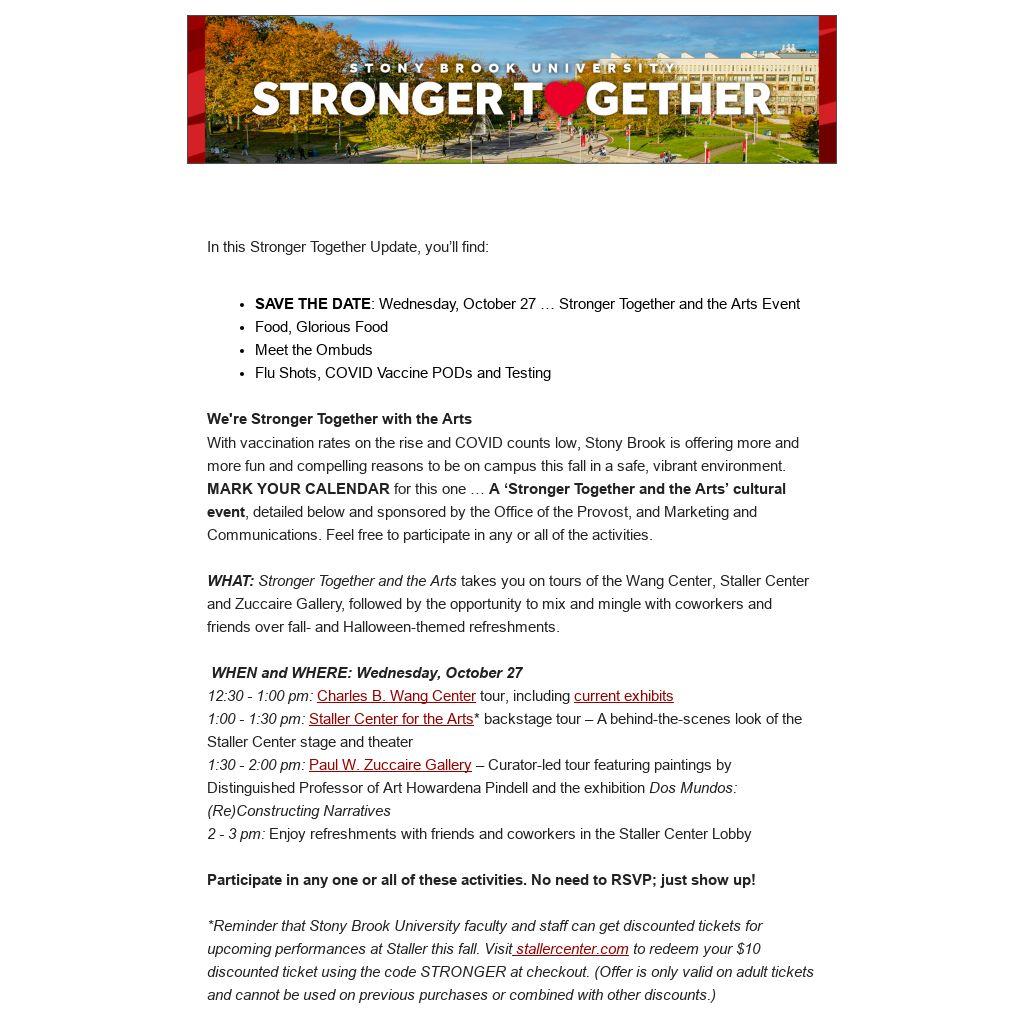 Contact us at strongertogether@stonybrook.edu with any questions/comments/ideas.