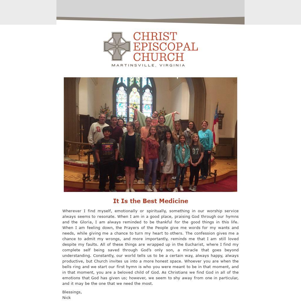 Outreach services are held each month at Blue Ridge Nursing Home and King's Grant. The service at Blue Ridge will be held on Tuesday, September 17 at 10:30A. The King’s Grant Service is planned for Thursday, September 20 at 3P. Christ Episcopal Church offers Holy Eucharist in Victory Chapel at King's Grant 4:30P.