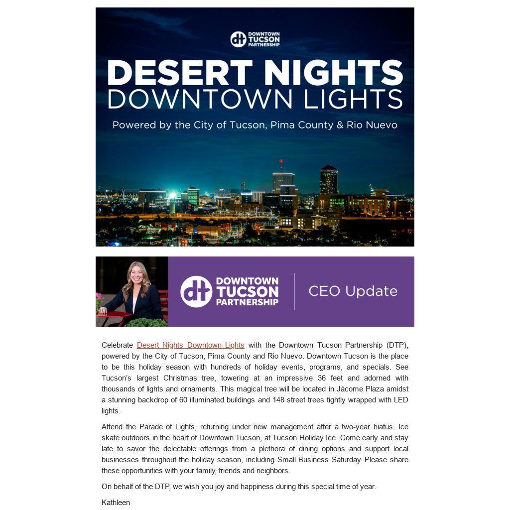 Tucson's Christmas Tree, presented by Rio Nuevo, will be located in Jácome Plaza downtown (101 N. Stone Avenue) starting Nov. 22. The tree will be adorned with thousands of white LED lights and over a thousand beautiful ornaments. Standing at an enormous 36 feet tall, Tucson's Christmas Tree is the largest in Southern Arizona. The tree will be available for viewing every day during regular park hours through Jan. 3, 2023, 6 a.m.-10:30 p.m.