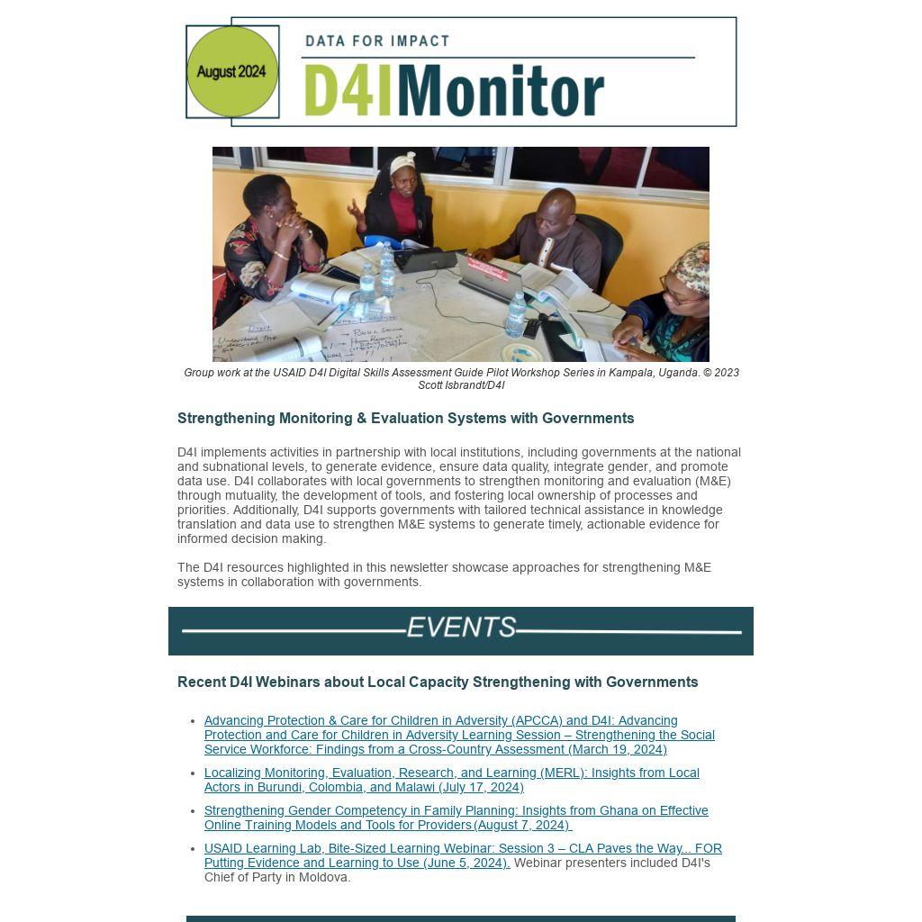 The D4I resources highlighted in this newsletter showcase approaches for strengthening M&E systems in collaboration with governments.